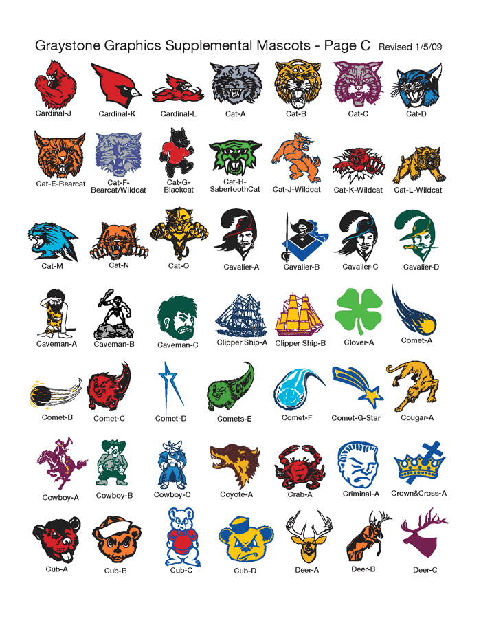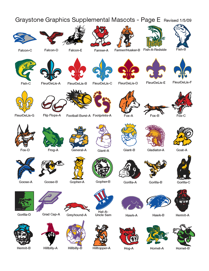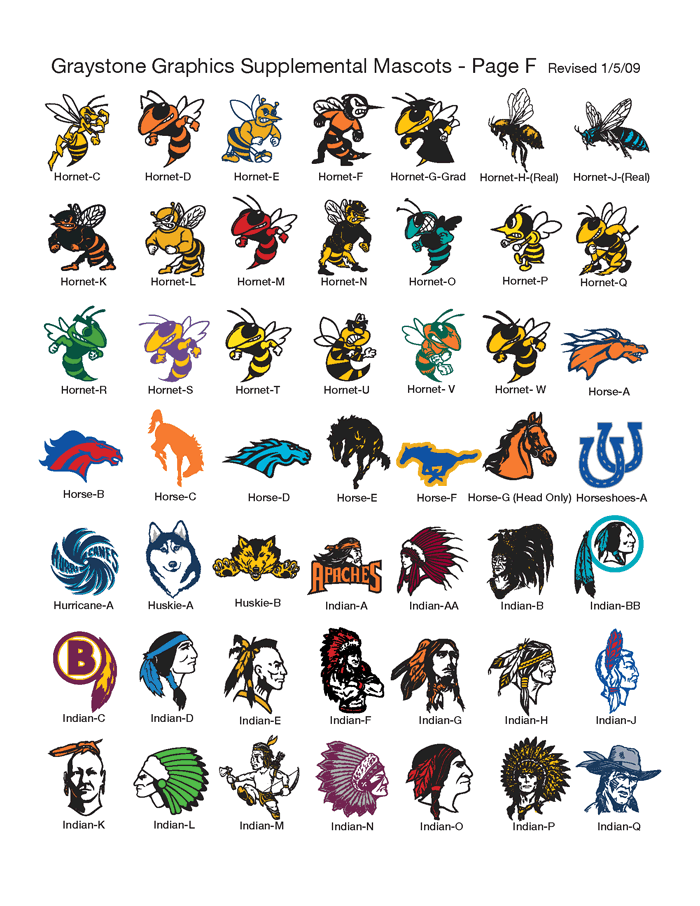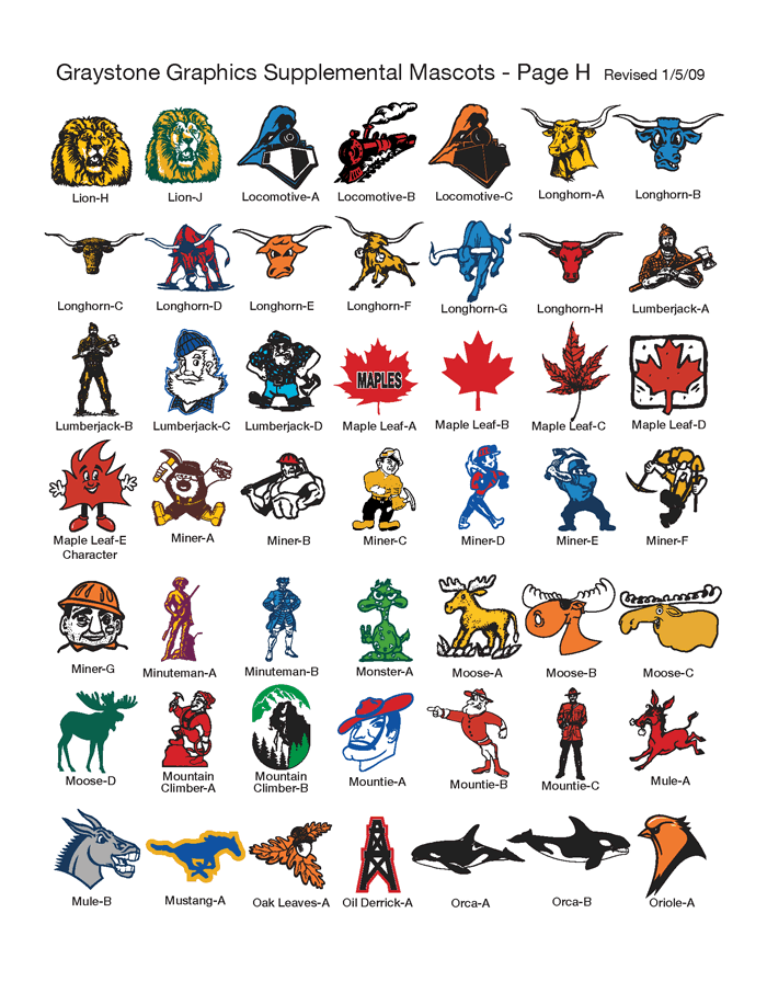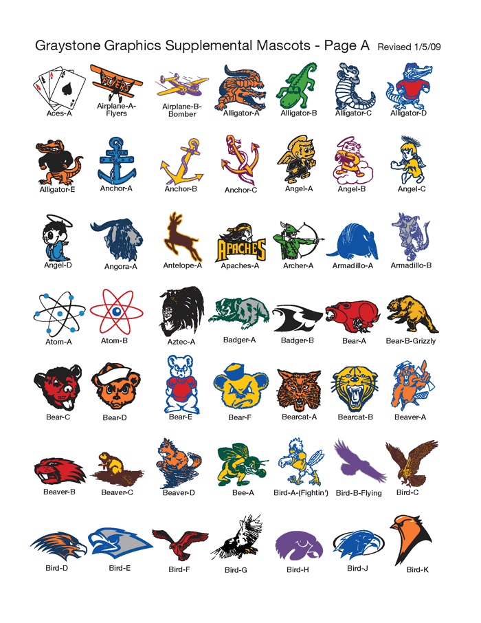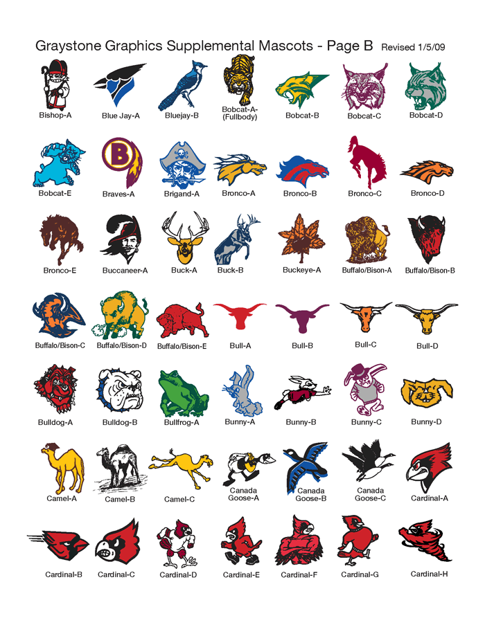 We also have a large selection of supplemental mascots in addition to those.